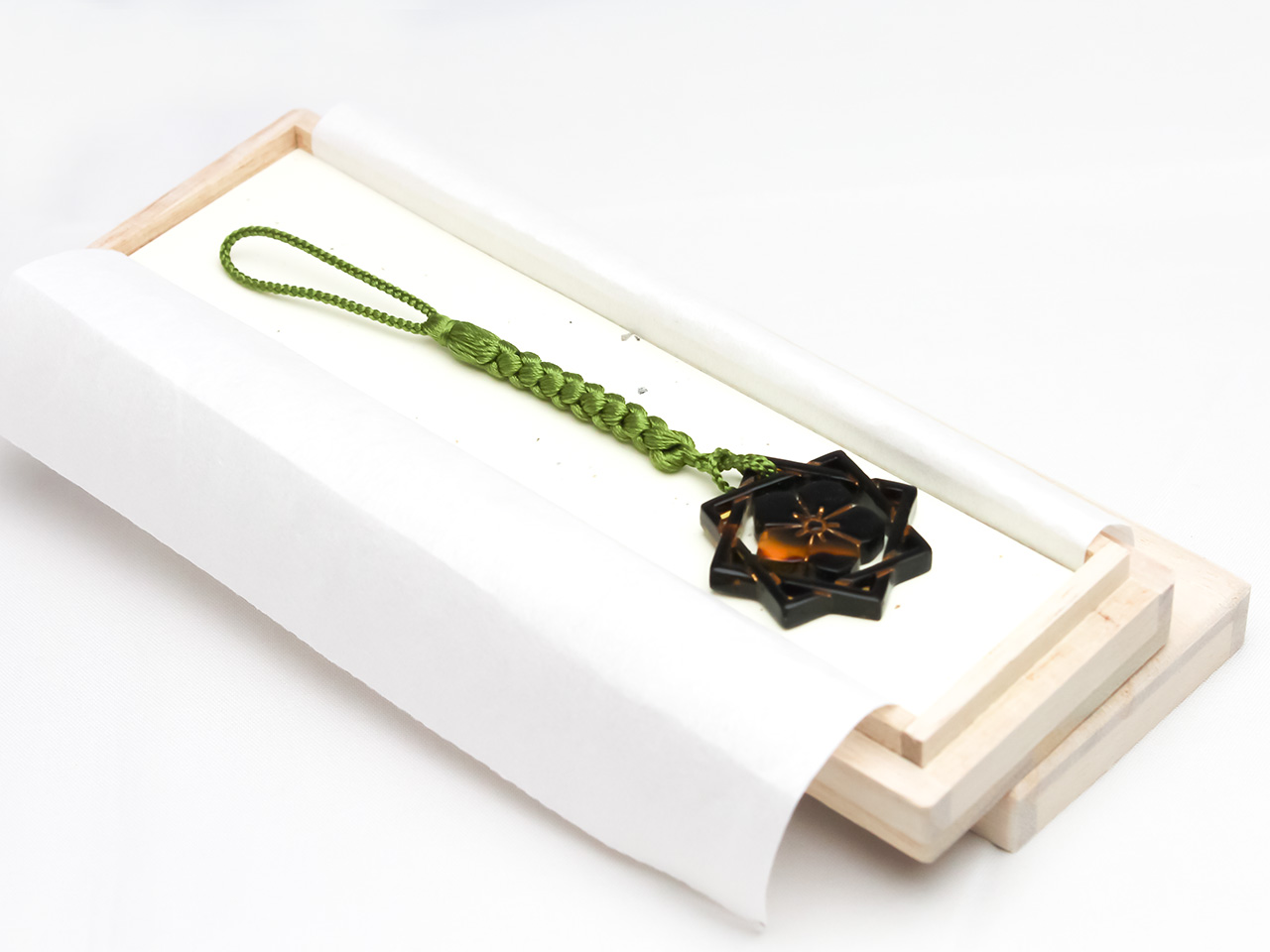 本べっ甲 根付 重ね枡桔梗